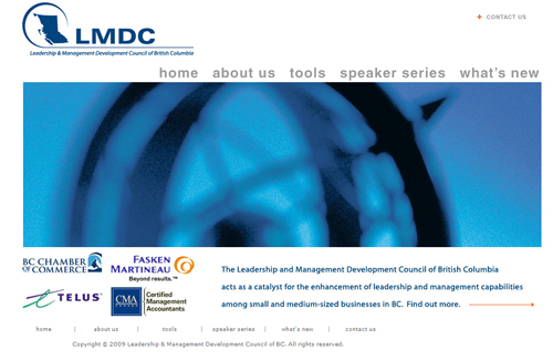 The Leadership and Management Development Council of B.C. (LMDC) serves as a catalyst in helping to strengthen leadership and management capabilities among small and medium-sized businesses in British Columbia. This brochure website covers all the bases and includes a WorkPress blog to boot.